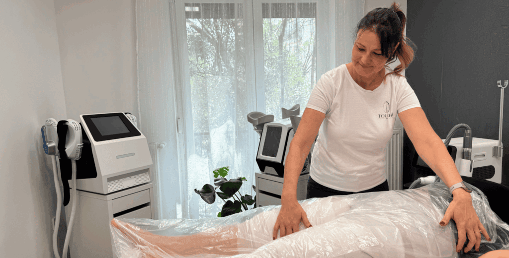 A kezelés során speciális, természetes hatóanyagokban gazdag krémet viszünk fel a bőrödre, majd a problémás területeket fáslival körbetekerjük. Ez a kombináció serkenti a vérkeringést, elősegíti a méreganyagok távozását, és támogatja a zsírsejtek lebontását.